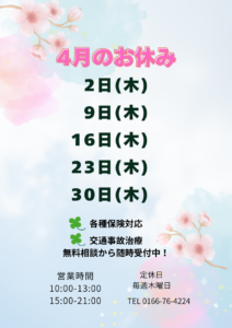 4月お休みのお知らせです😊